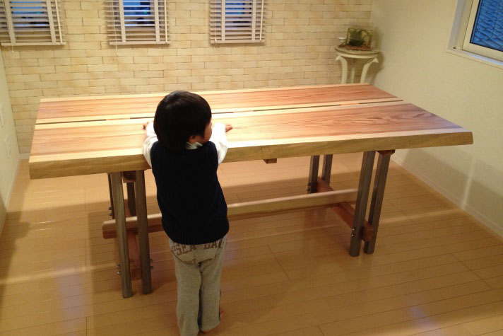 お子様も無垢の天板を気持ちよさそうにさすっていました。